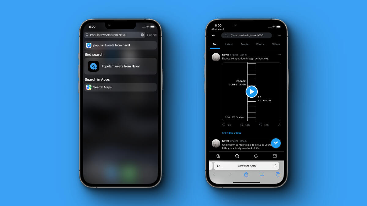 Ability to add search queries from Bird search app to Shortcuts app