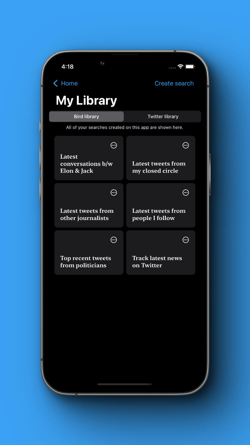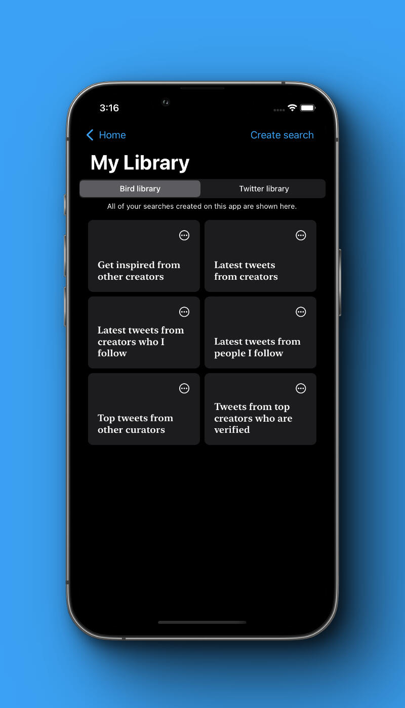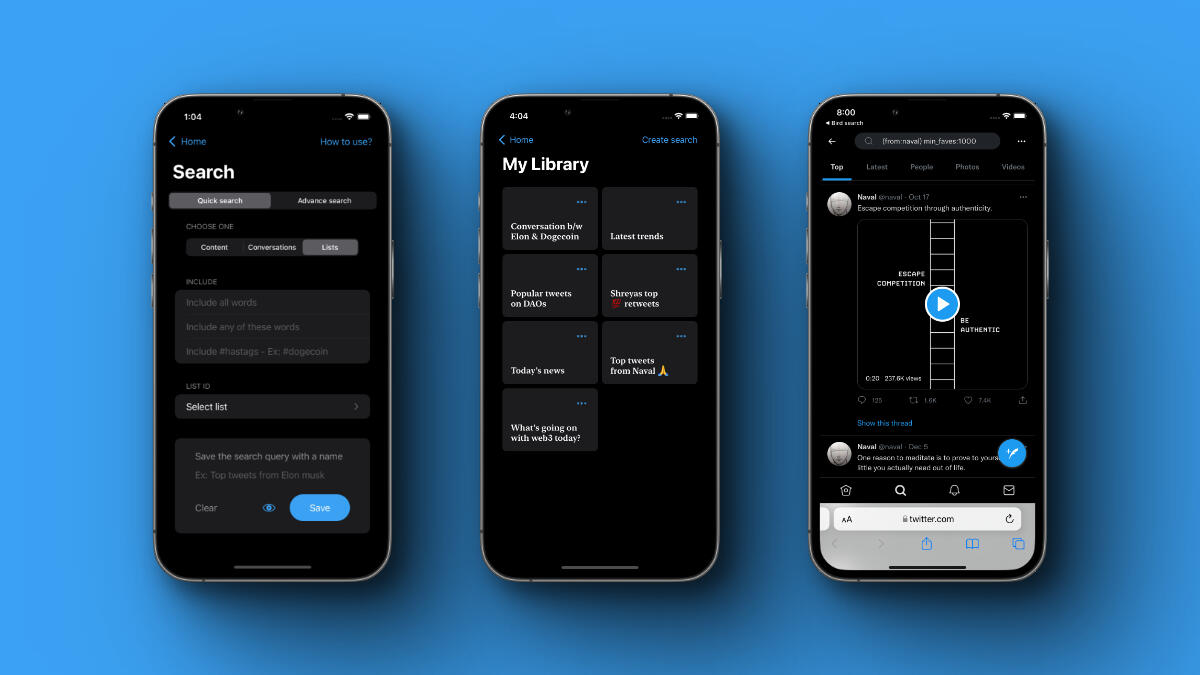 You are one tap away from library to search high signal content on twitter.